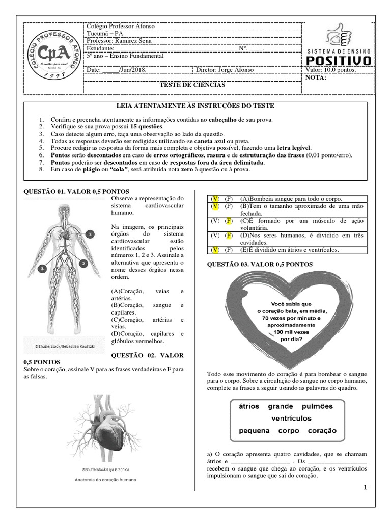 5º Ano Prova Ciencias 2 Bimestre Sangue Pulmao