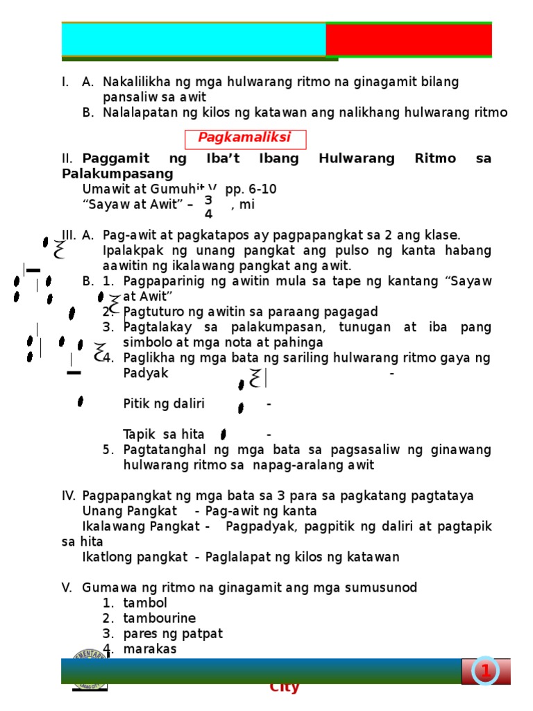 Musika 6 Lesson 3 Paggamit Ng Hulwarang Ritmo Sa Palakumpasang 34